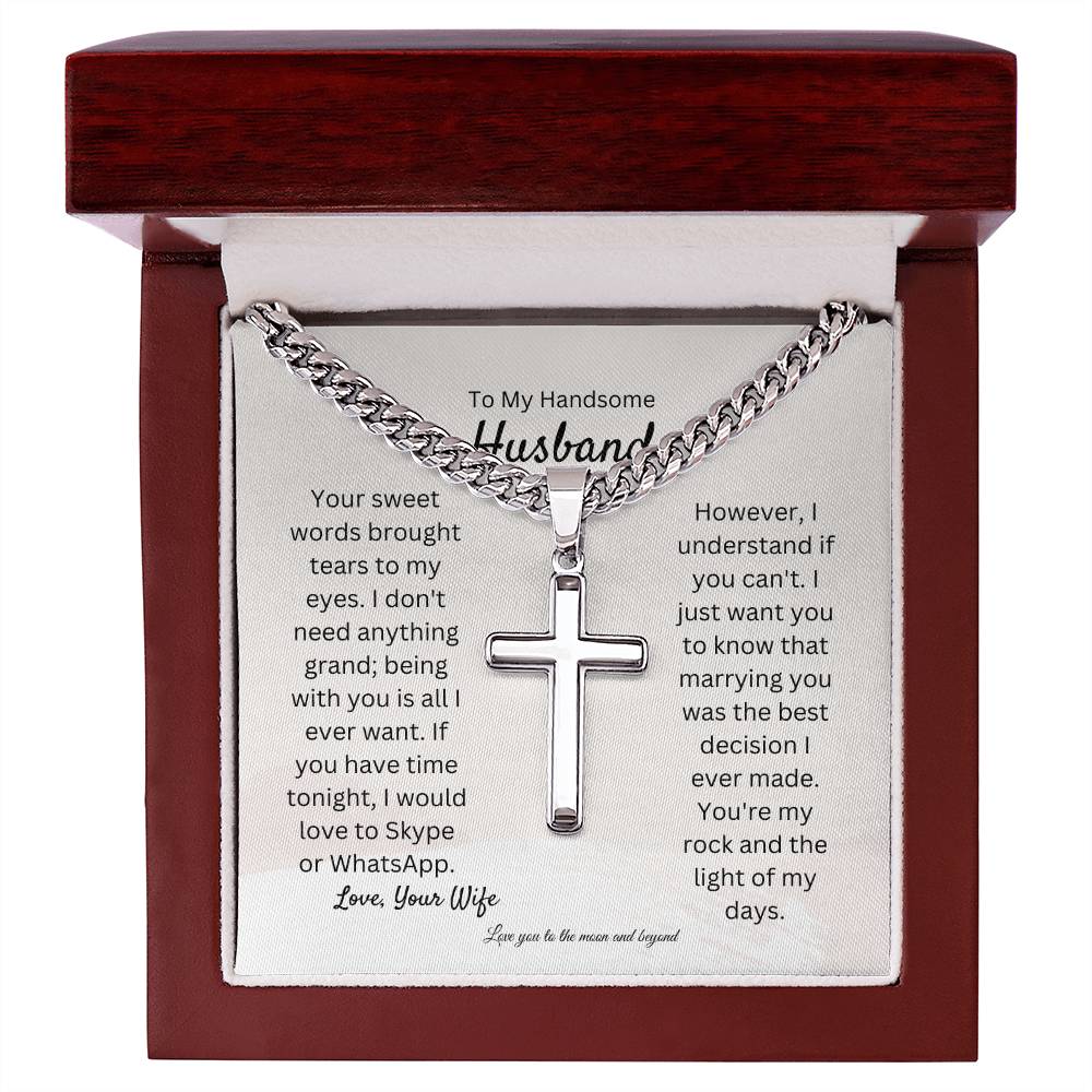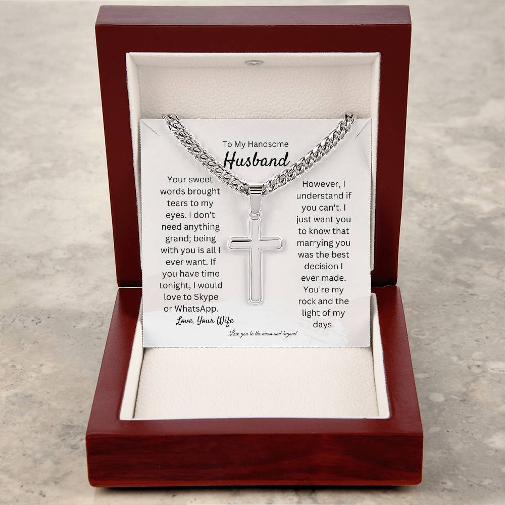 My Handsome Husband | Polished Stainless Steel with Pendant | Personalized Cuban Chain with Artisan Cross Necklace Gift