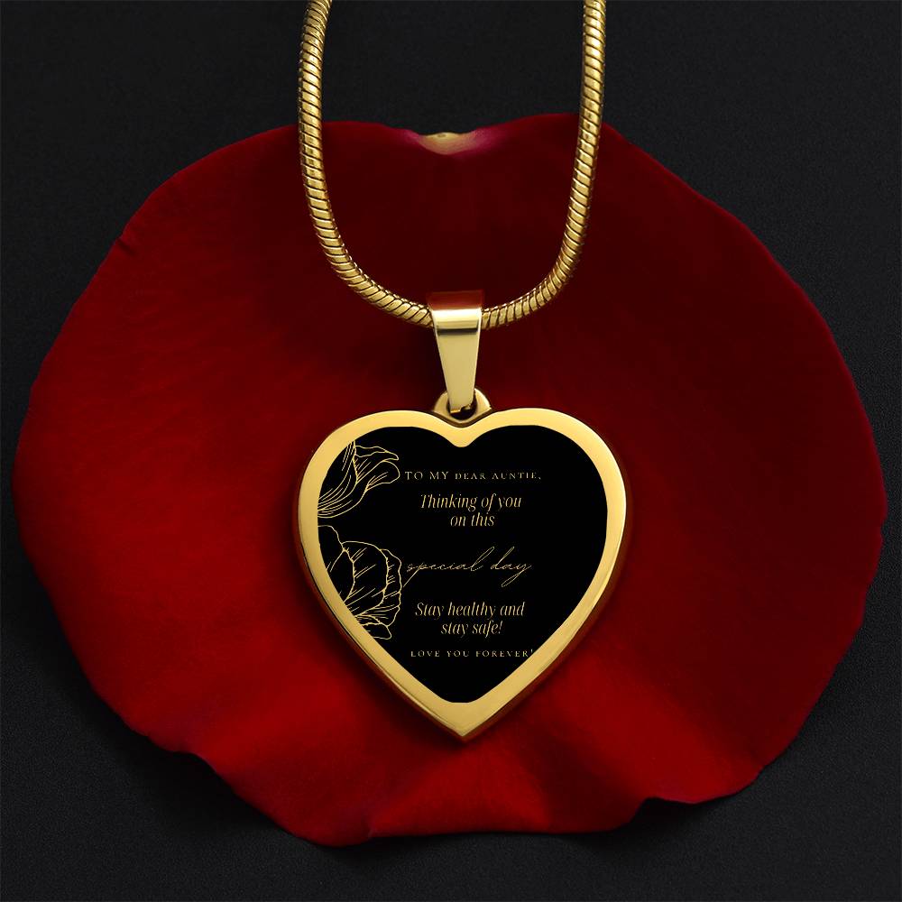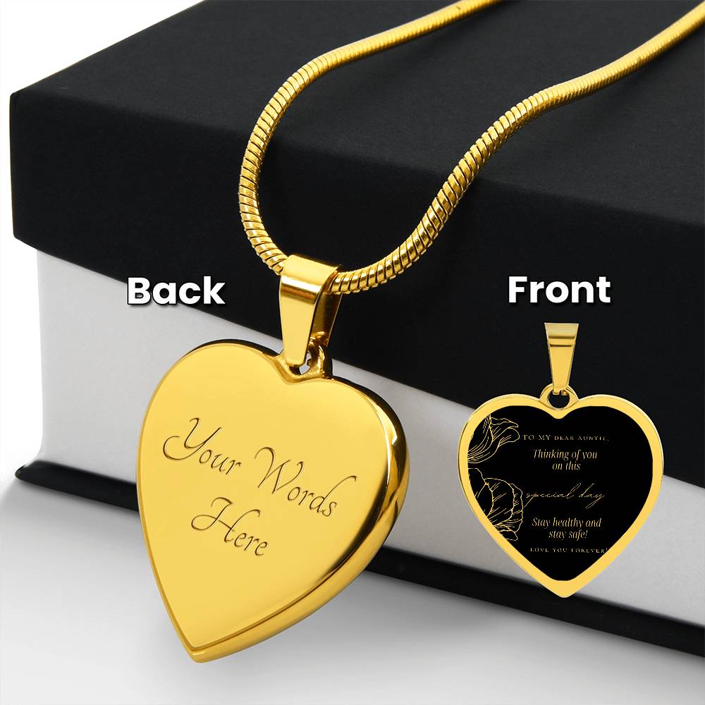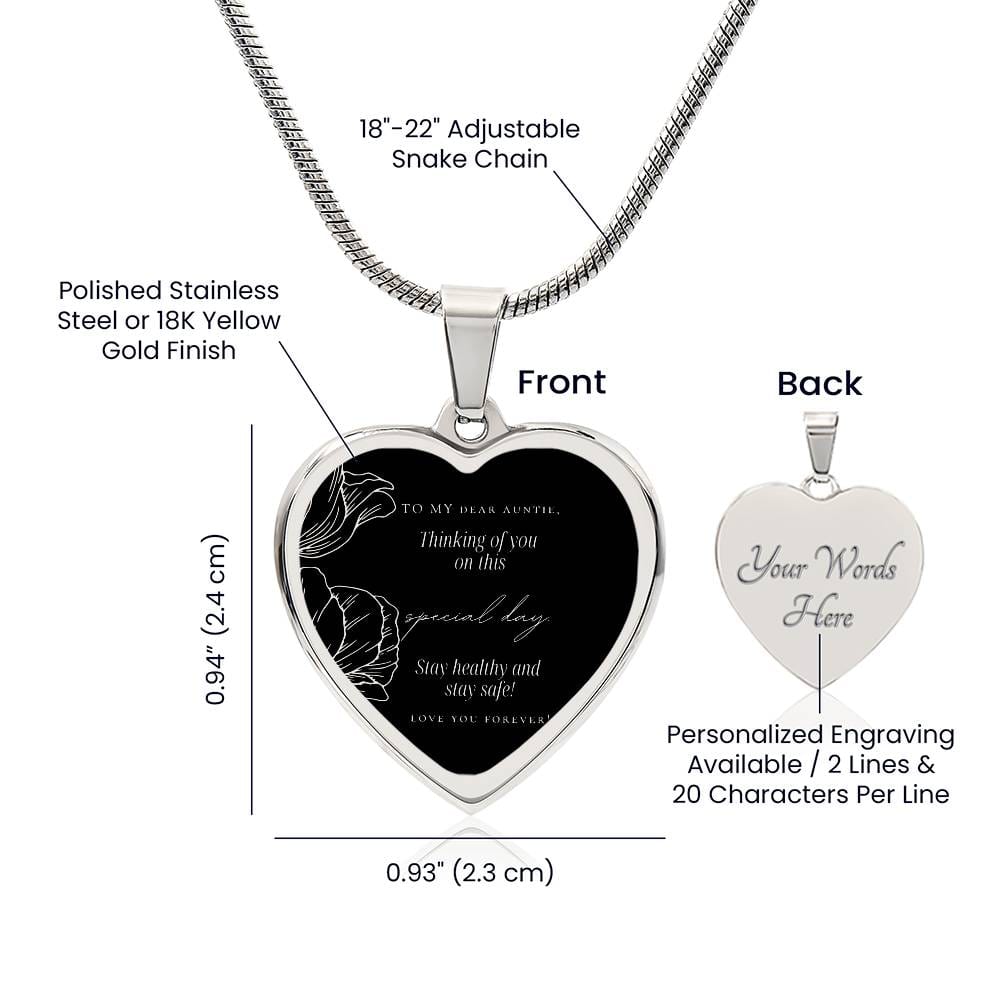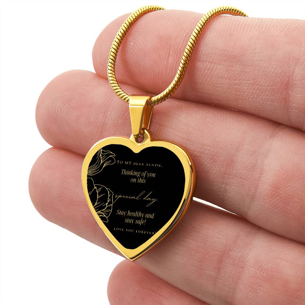 To My Dear Auntie | Engraved Heart Necklace with Adjustable Snake Chain | Quality Stainless Steel or Yellow Gold Finish | Gift