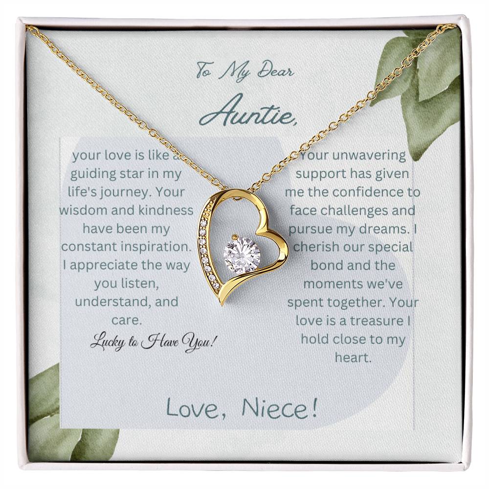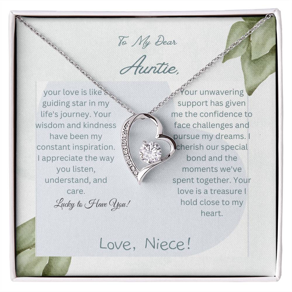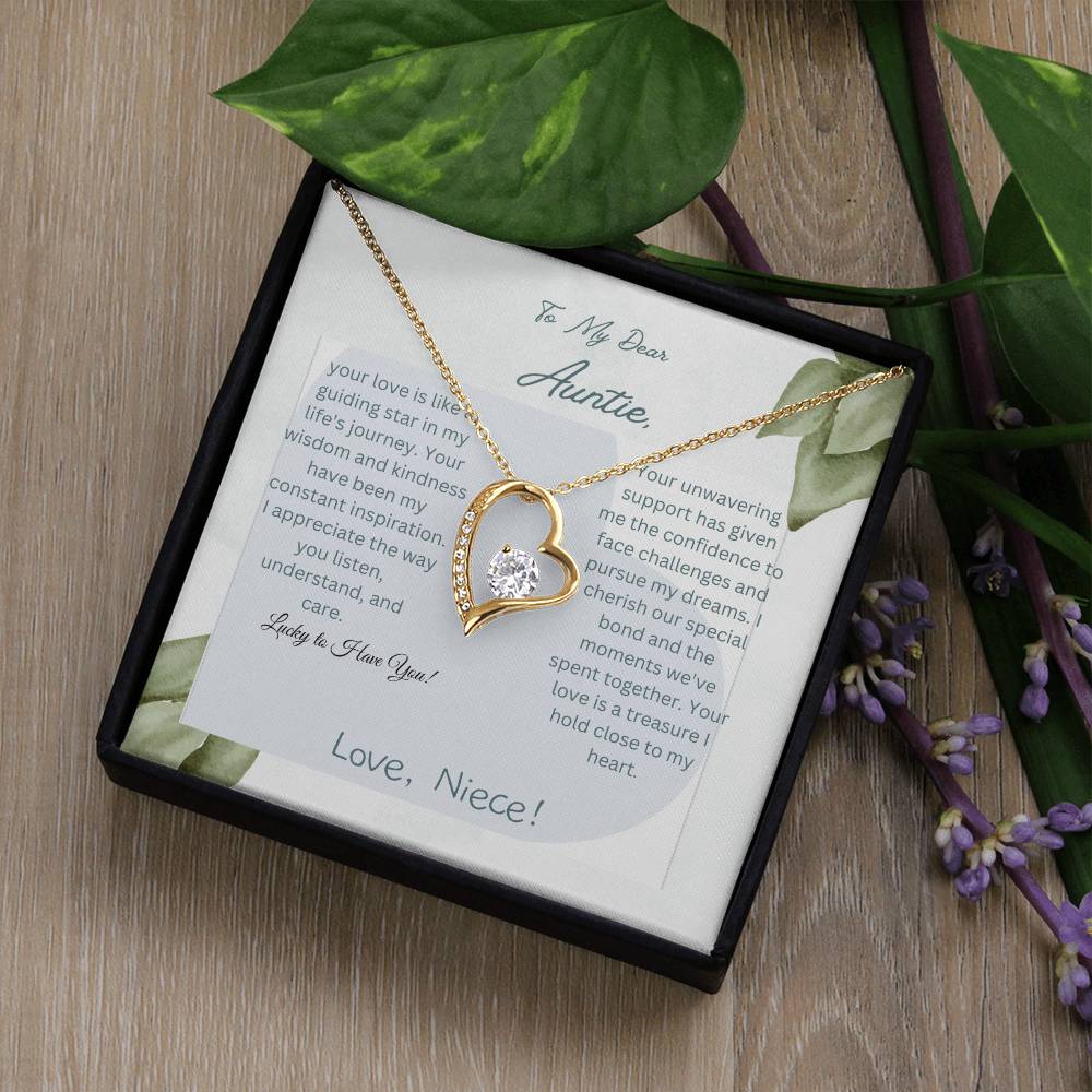 To My Dear Auntie | Forever Love Necklace with CZ Crystal | White or Yellow Gold Finish with Pendant | Exquisite Gift