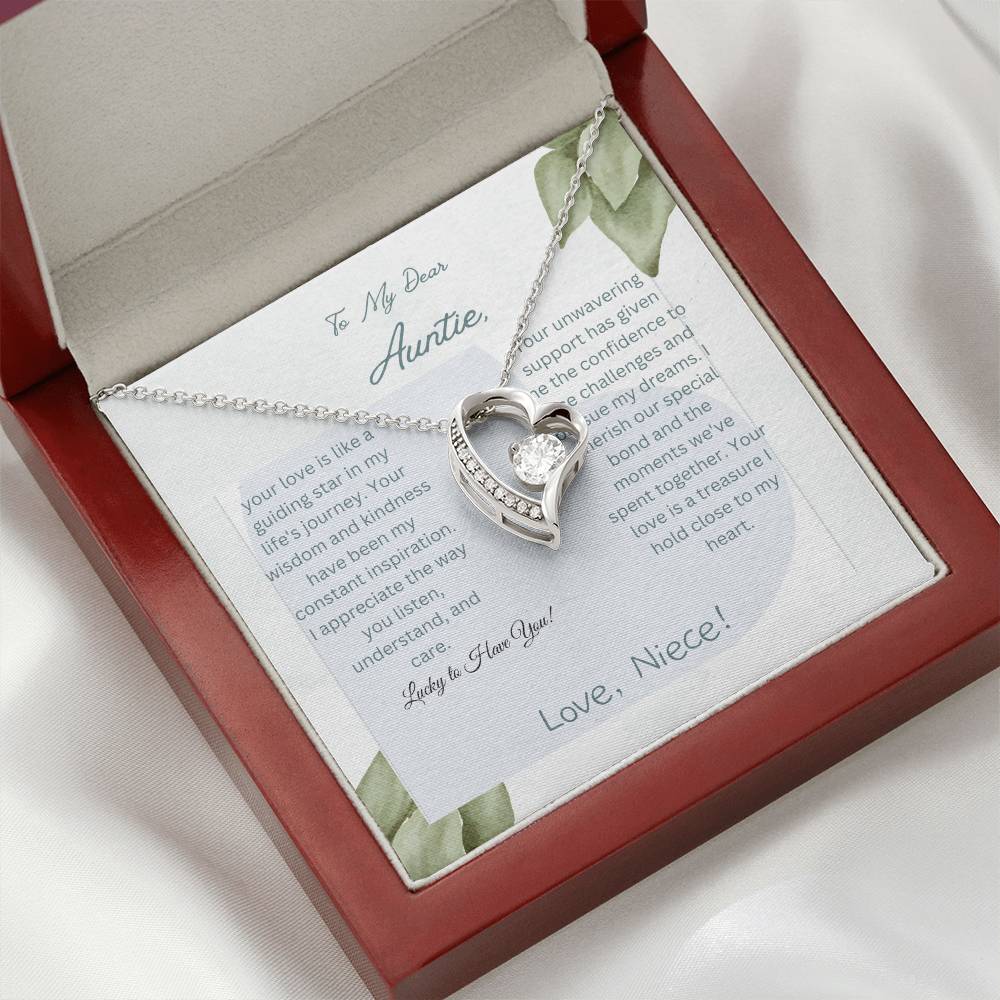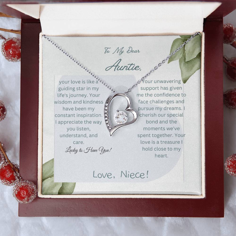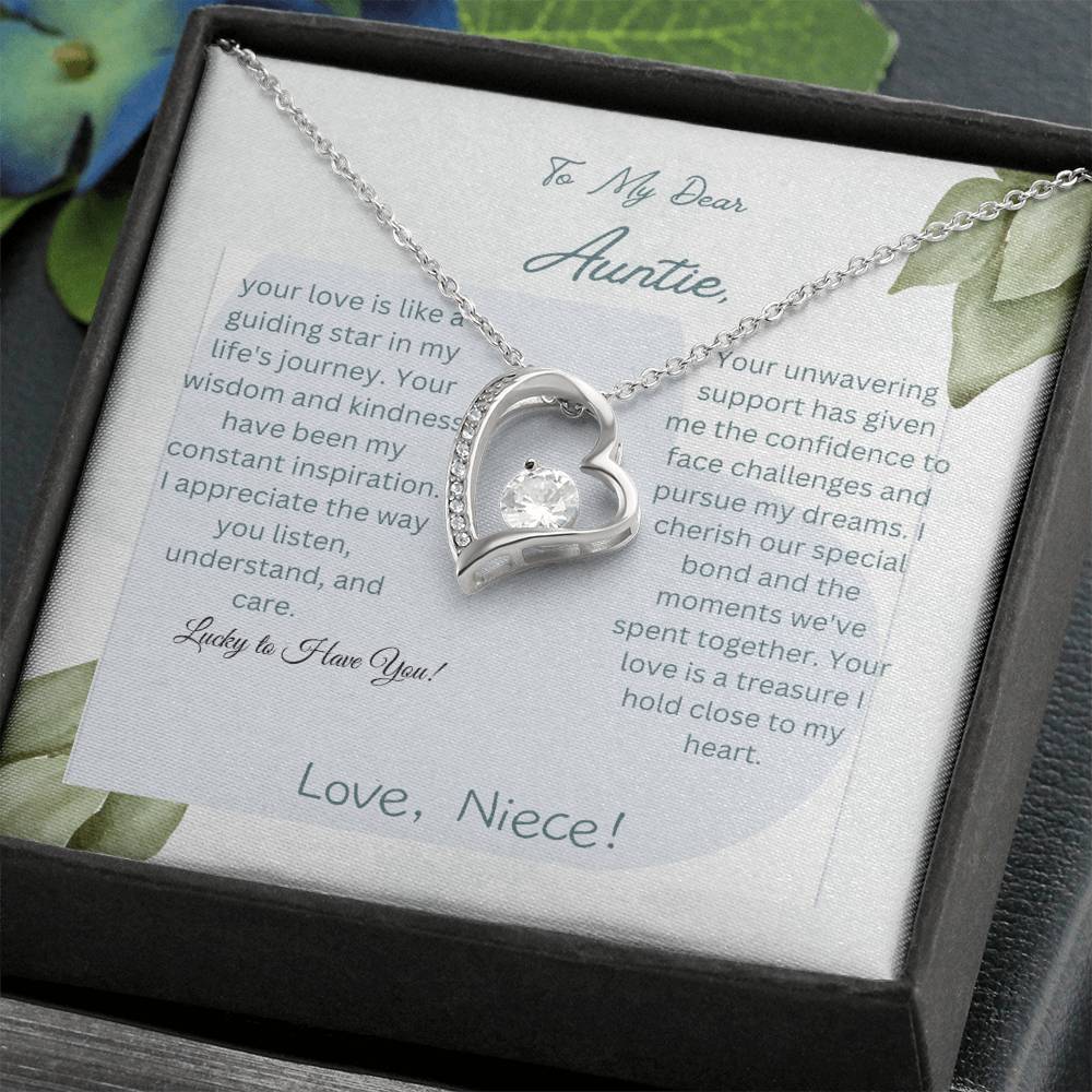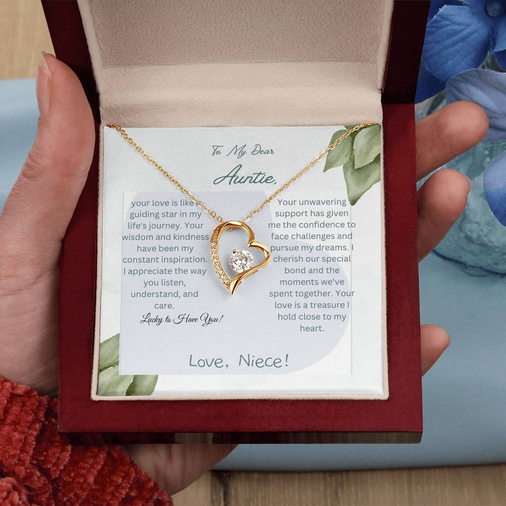 To My Dear Auntie | Forever Love Necklace with CZ Crystal | White or Yellow Gold Finish with Pendant | Exquisite Gift