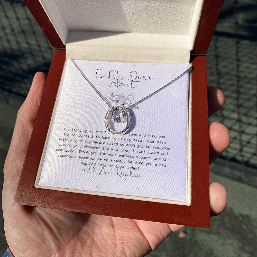 To My Favorite Aunt | Cubic Zirconia Crystal Pendant Necklace | White Gold Over Stainless Steel | Gift