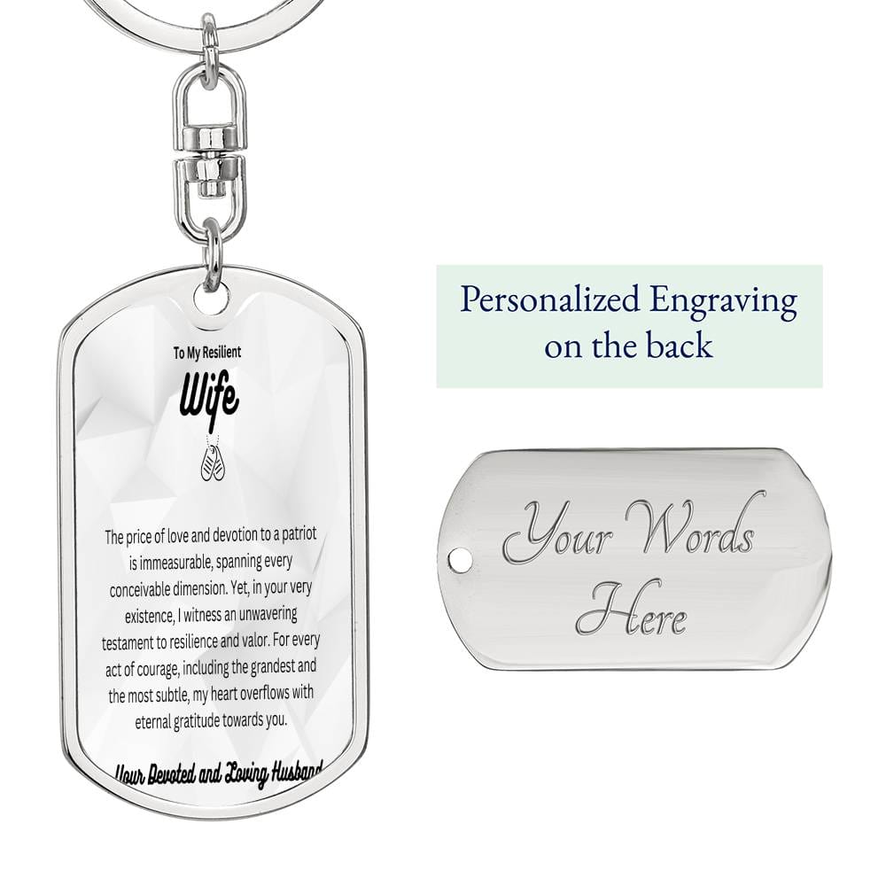 To My Graceful Wife | Graphic Dog Tag Keychain with Swivel Keychain | Inspires Strength and Commitment
